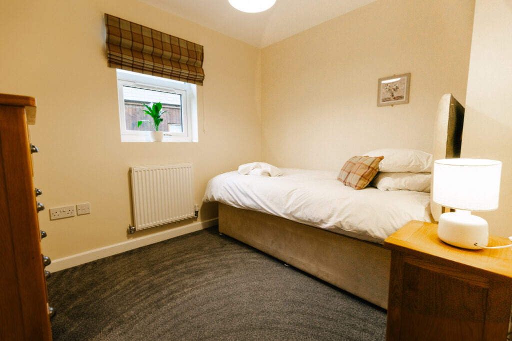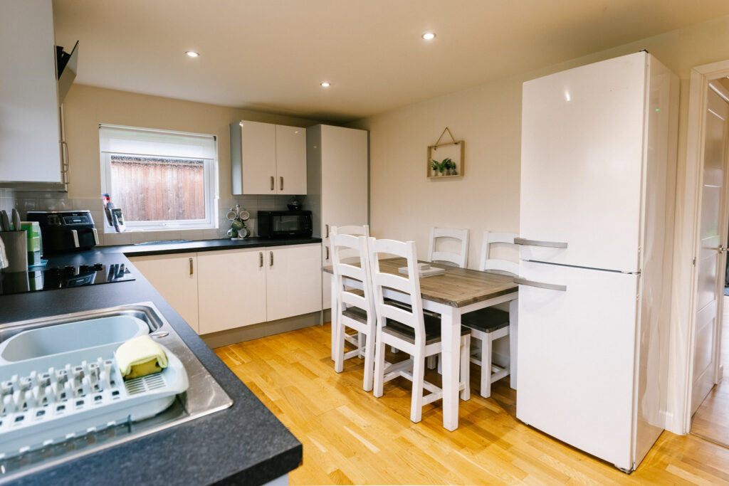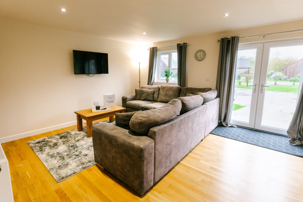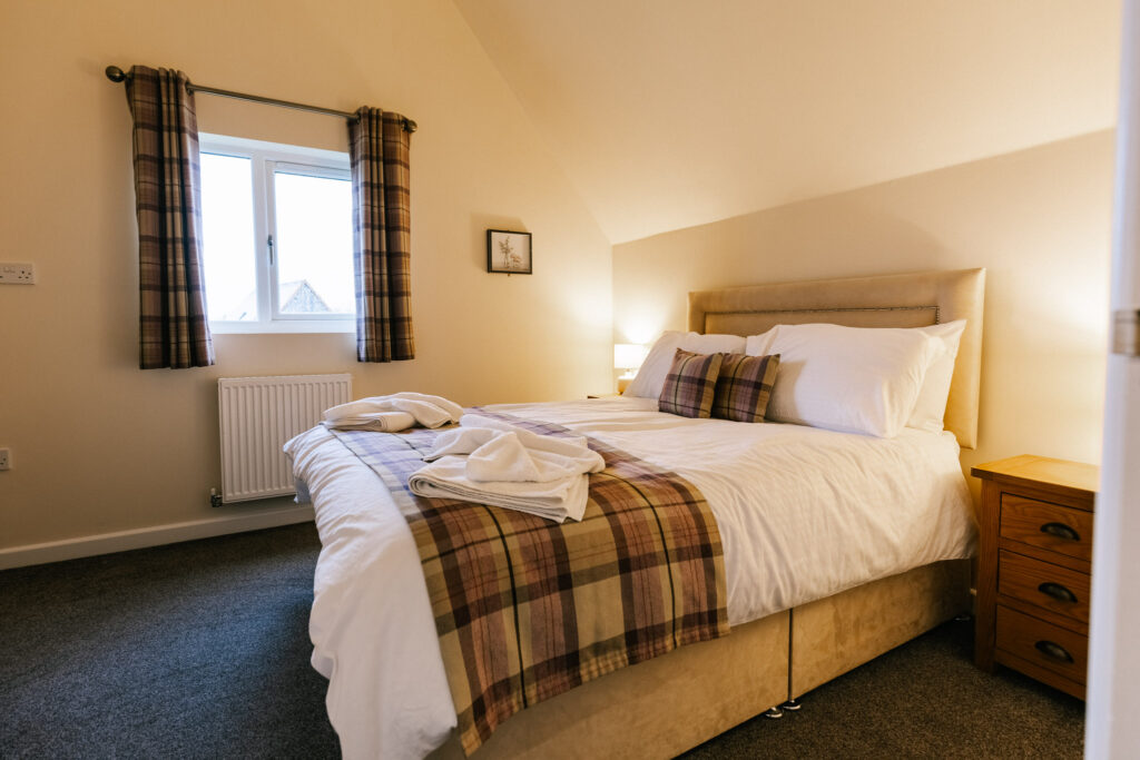 Three bedrooms: 2 x double, 1 x double Bathroom with bath, walk-in shower, basin and WC Open-plan living space with kitchen, dining area and sitting area.
