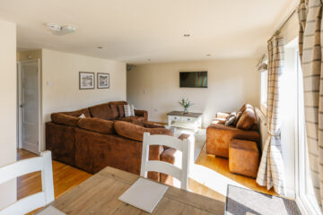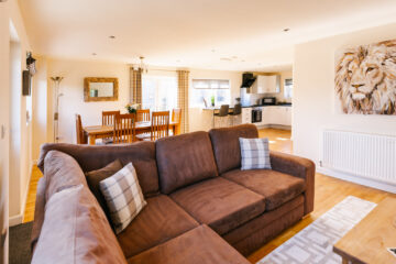 (Dog friendly) This lodge is slightly set back, offering you greater privacy for your large group of up to 9. The inviting living room and dining area are combined, the kitchen and bathroom area are separate to it. It features five bedrooms. On the ground floor are three of the Read more